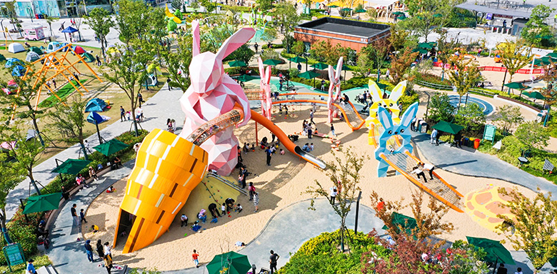 乐园与遗址公园完美融合,组合几十种原创无动力游乐设施,既保留了遗址的文化风貌、自然风光,同时将游乐体验与特色历史人文元素进行融合,通过“亲子游+研学游+度假游”三维一体融合,实现了“寓教于乐、寓教于游、袭古创今”的特色文旅产品。