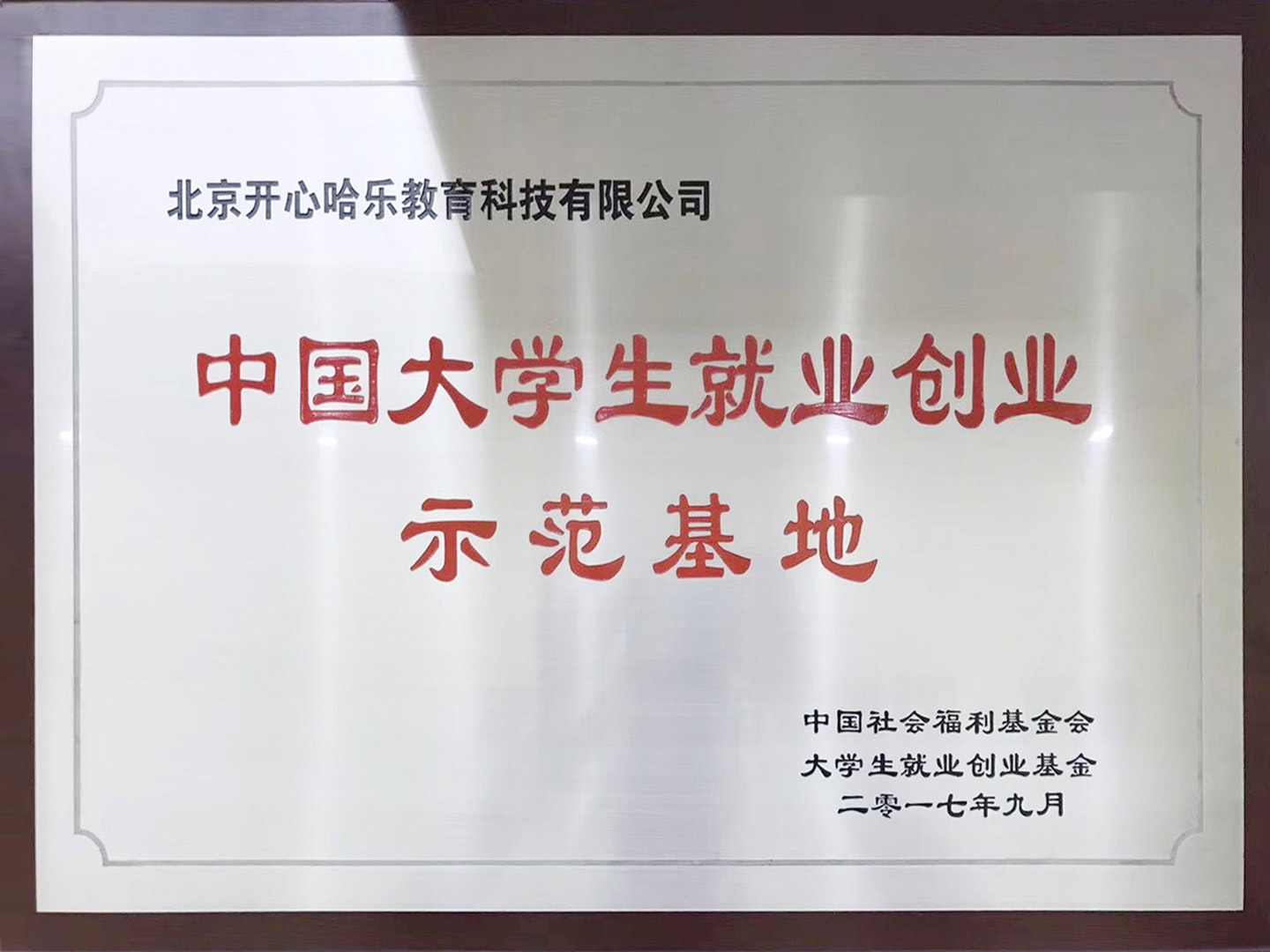 中国大学生就业创业示范基地奖牌(如下图)