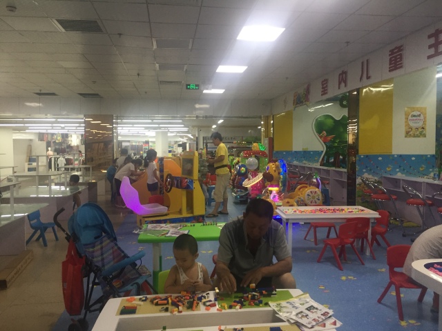 乐园的地面铺满了黄蓝相间的泡沫垫,鲜亮的色彩,充满了亲和力,为孩子们的玩乐,打造了轻松欢快的氛围。彩色的轨道,可以把玩各式玩具车、玩具球。小朋友们趴在里面上,忘情而专注地玩耍着,享受着这段无忧无虑的暑期时光。
